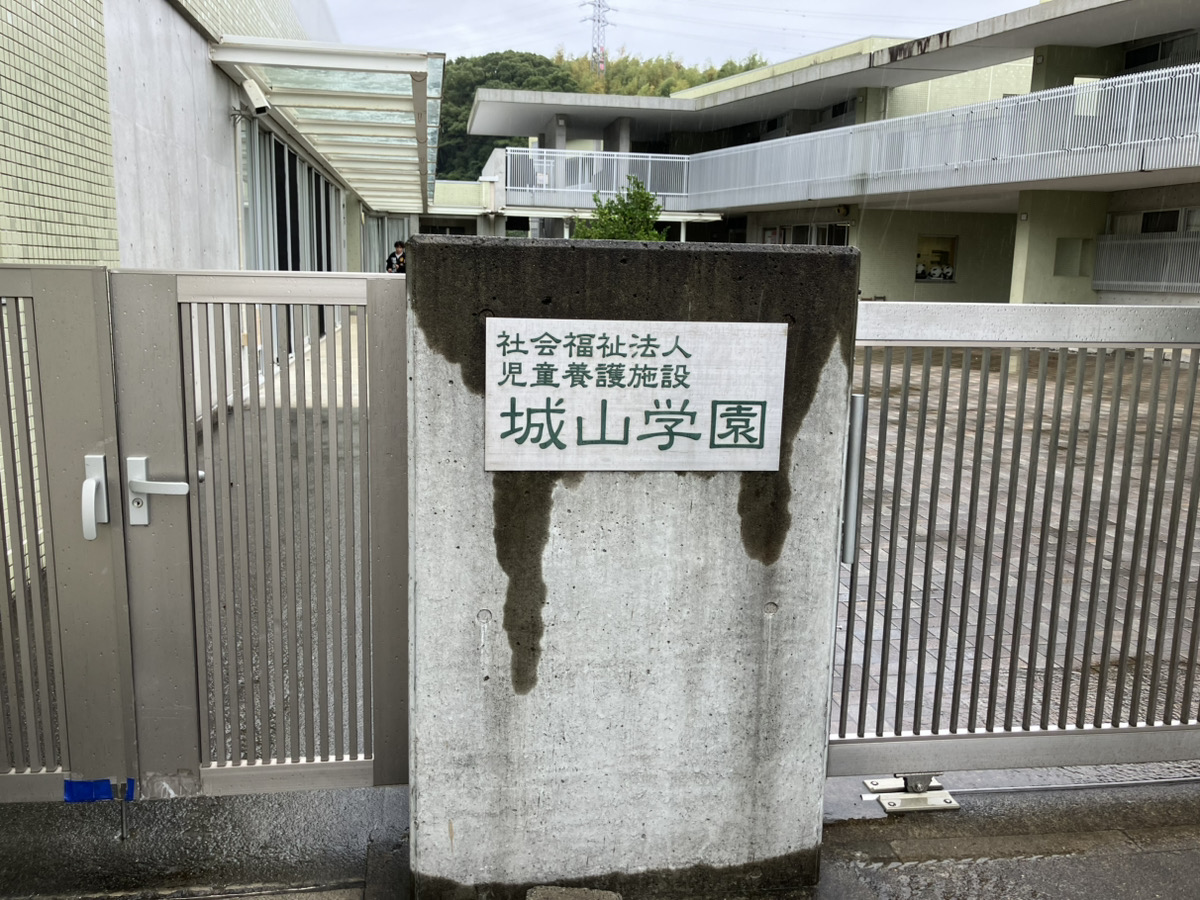 当日は、あいにくの冷たい雨でしたが、児童養護施設「城山学園」は、晴れていれば相模湾が一望できるであろう、坂の上のとても環境の良い場所にあります。