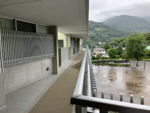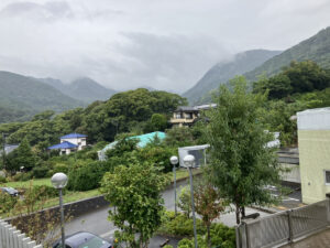 施設の周りには、もうすぐ収穫の時期を迎えるであろうミカン畑が、少し急な坂道の両側にあり、数多くのミカンが栽培されています。